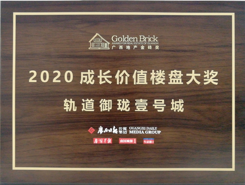 • 軌道御瓏壹號城獲得廣西地產(chǎn)金磚獎2020成長價值樓盤大獎