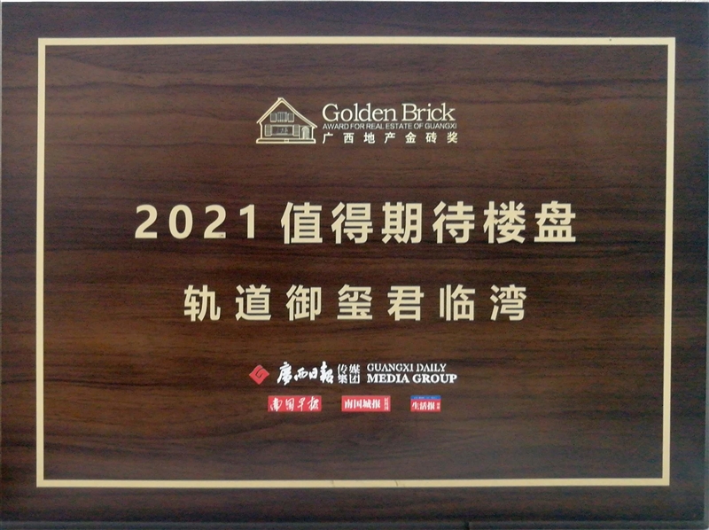 • 軌道御璽君臨灣獲得廣西地產(chǎn)金磚獎2021值得期待樓盤稱號
