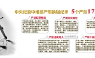 “5個(gè)嚴(yán)禁”“17”個(gè)不準(zhǔn)”和“5個(gè)一律” “5個(gè)嚴(yán)禁”: 嚴(yán)禁拉票賄選、嚴(yán)禁買官賣官、嚴(yán)禁跑官要官、嚴(yán)禁違規(guī)用人、嚴(yán)禁干擾換屆“17個(gè)不準(zhǔn)”: 1、不準(zhǔn)在民主推薦、民主測評(píng)、組織考察和選舉中搞拉票等非組織活動(dòng),通過宴請(qǐng)、安排消費(fèi)活動(dòng)、打電話、發(fā)短信、當(dāng)面拜訪、委托或者授意中間人出面說情、舉辦聯(lián)誼活動(dòng)等形