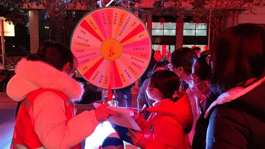 紅火的燈籠掛在枝頭,濃濃的年味已在廣場上蔓延,燈籠上懸掛有節(jié)日燈謎以及黨的二十大知識、民族團結(jié)知識、廉潔知識、垃圾分類知識、安全生產(chǎn)知識的題目。大家三五成群看謎面、猜謎語,沉浸在猜謎解謎的樂趣中。這種寓教于樂的方式,充分調(diào)動了大家學(xué)習(xí)的興趣,大大提高了黨員教育的實際成效。