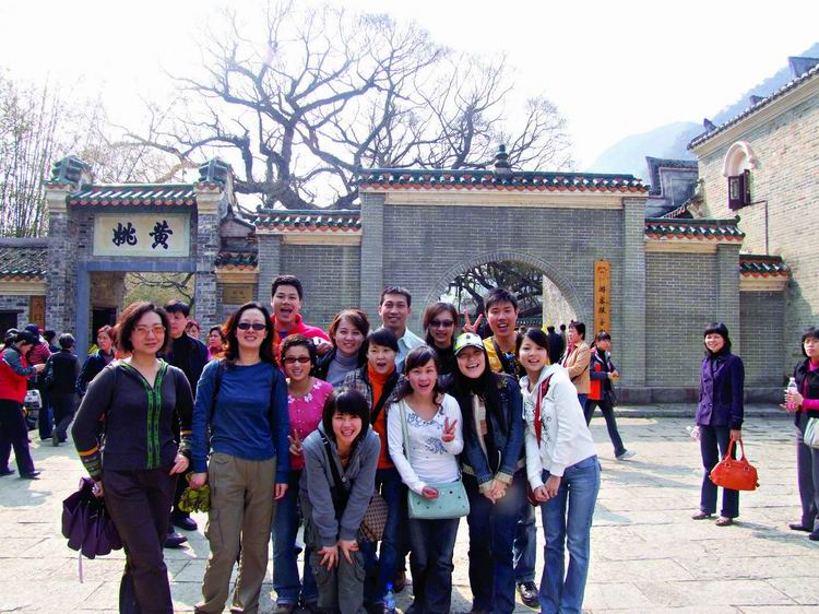 第三日清晨,整裝待發(fā)八點前往黃姚古鎮(zhèn)。賀州是粵東的一座新興城市,而黃姚,卻有著近千年的厚重。從古鎮(zhèn)入口前左邊的一條岔路走進去,首先觸目的便是一條清澈的小溪、一棵參天的古榕樹,我們開始細細觀賞這個小鎮(zhèn)。古榕的軀干伸向小溪,又從空中垂下縷縷氣根,與水中的倒影連為一體。溪邊水井里清可見底,偶有小魚游動。據(jù)說黃姚是按九宮八卦陣式布局,鎮(zhèn)上的石板街有8條,共99999塊青石板,最早鋪砌于清順治年間。年代久遠,不知有多少人走過,青石板已被磨得像鏡子般光滑,隱約泛著人影。橋下的姚江,如今看水依舊清碧,可是繁華不再,顯赫的牌匾也只能靜靜地訴說著昔日的輝煌。石板路的小村落很安靜,人們過著日常的生活,村婦們在井頭溪邊,淘菜洗衣,交流信息,菜渣、閑話都隨溪水流去,并不對外來的游客有格外的好奇。孩子們快樂地嬉戲著,在那些蜿蜒的巷子里不時冒出他們快樂的喧嘩。宗祠府第這樣的舊時輝煌不經(jīng)意地散布于鎮(zhèn)上的民居之中,亭閣前的聯(lián)匾,記錄著文人騷客對黃姚的鐘愛,只是年代遠去,如今物是人非。陽光下的青石板路上有時候也會躺著狗或者貓,你從它們身上跨過去的時候,它們會懶懶地翻翻眼皮,然后繼續(xù)睡在陽光里。雞們顯得勤快些,會邁著方步走在你前面東看看西瞅瞅,如果你不急,它會一直走在你前面,時間對它們沒有任何意義。還有那些老房子,任何一座都可能藏著一個故事。結(jié)了蛛網(wǎng)的窗欞恐怕已有了幾百年的歷史,但是沒有人把這當(dāng)成了不得的事情,一切如常,平靜隨意。
