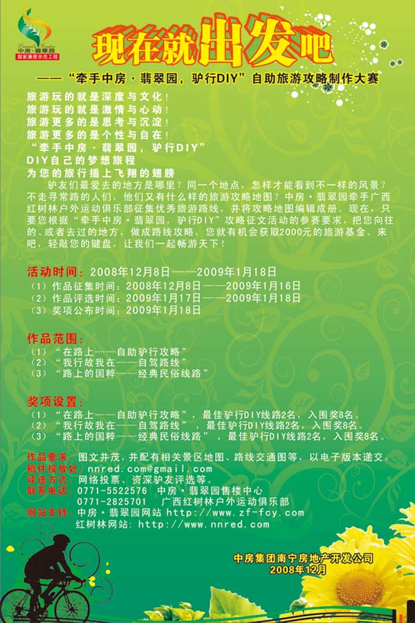 現(xiàn)在,只要您根據(jù)“牽手中房·翡翠園,驢行DIY”攻略征文活動(dòng)的參賽要求,把您向往的、或者去過(guò)的地方,做成路線攻略,您就有機(jī)會(huì)獲取2000元的現(xiàn)金大獎(jiǎng)。來(lái)吧,輕敲您的鍵盤(pán),讓我們一起暢游天下!